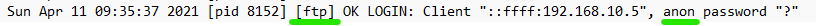 Jaki serwis i konto zostało wykorzystane do pobrania plików z serwera? Z logów wynika, że było to konto anonimowe dla serwisu ftp: